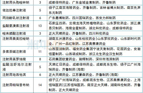正在審評(píng)的注射劑一致性評(píng)價(jià)補(bǔ)充申請(qǐng)情況(3家及以上)