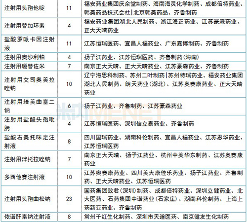 米內(nèi)網(wǎng)數(shù)據(jù)顯示,目前一致性評(píng)價(jià)補(bǔ)充申請(qǐng)正在審評(píng)的注射劑品種有125個(gè),涉及受理號(hào)超過(guò)400個(gè),其中,注射用頭孢曲松鈉、注射用帕瑞昔布鈉、鹽酸氨溴索注射液、鹽酸羅哌卡因注射液等37個(gè)品種申報(bào)企業(yè)有3家及以上,注射用頭孢曲松鈉和注射用帕瑞昔布鈉的申報(bào)企業(yè)數(shù)量最多,涉及江蘇恒瑞醫(yī)藥、齊魯制藥、揚(yáng)子江廣州海瑞藥業(yè)、江蘇奧賽康藥業(yè)、湖南科倫制藥、正大天晴藥業(yè)等企業(yè)。
